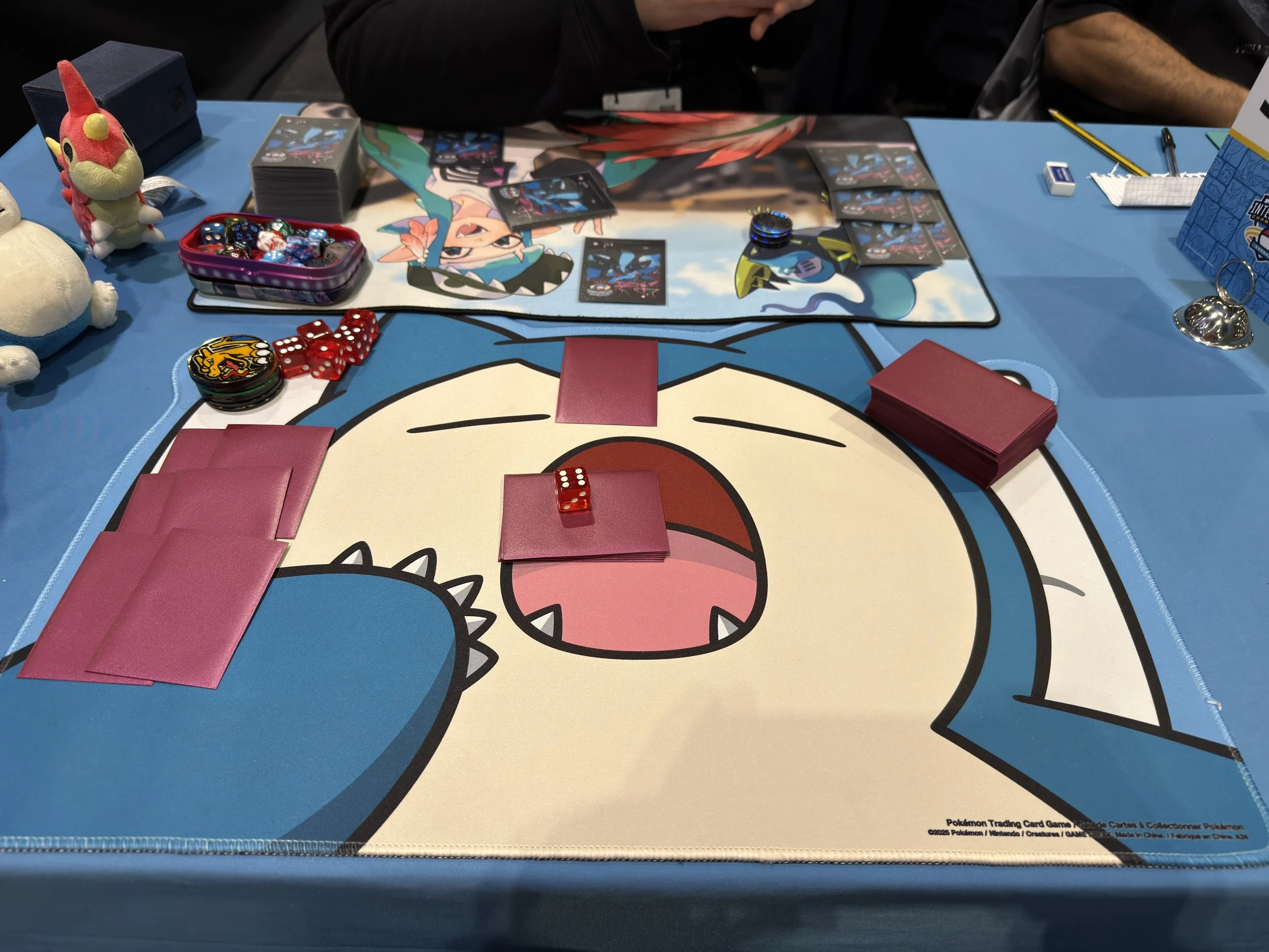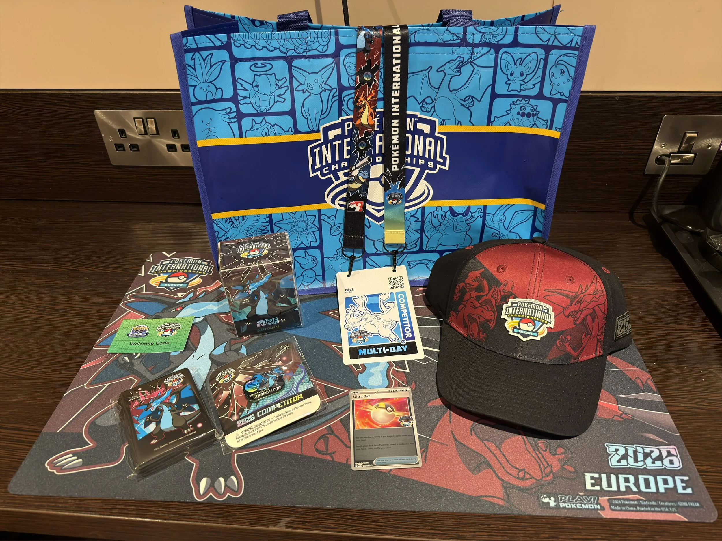 We drove up on Thursday and headed straight to the ExCeL to register and collect our competitor kits. That alone felt special. Each competitor received a playmat, hat, card sleeves, a pin badge, a special stamped Pokémon card and a deck box. It was a shame that the vendors weren’t open on Thursday, but collecting our badges early meant we could avoid long queues on Friday morning before the main event started, which proved to be a smart move.